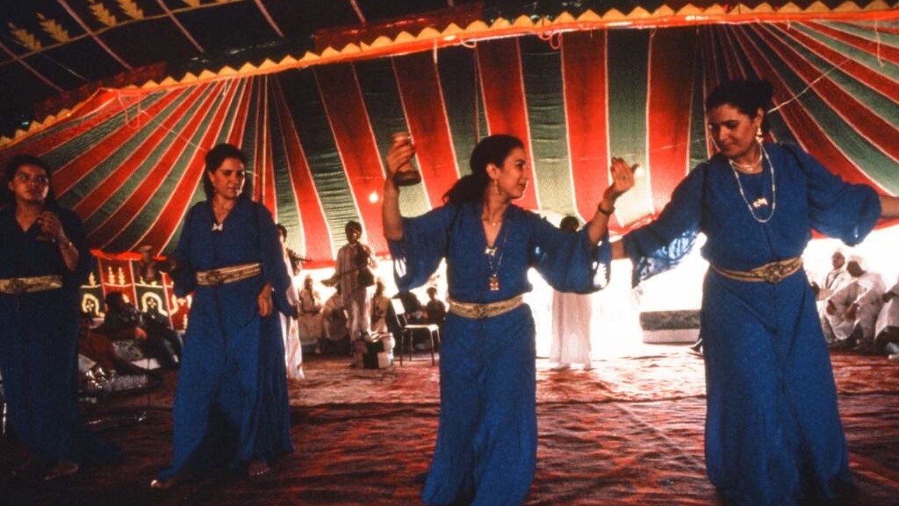 Fatna Bent El Hocine and her group of female troubadours travel through Morocco singing songs of aïta — a trance-like call and response, bringing to life tales from Morocco’s history. Génini shows the singers in moments of fantasia and celebration, but also in intimate camaraderie and reflection.