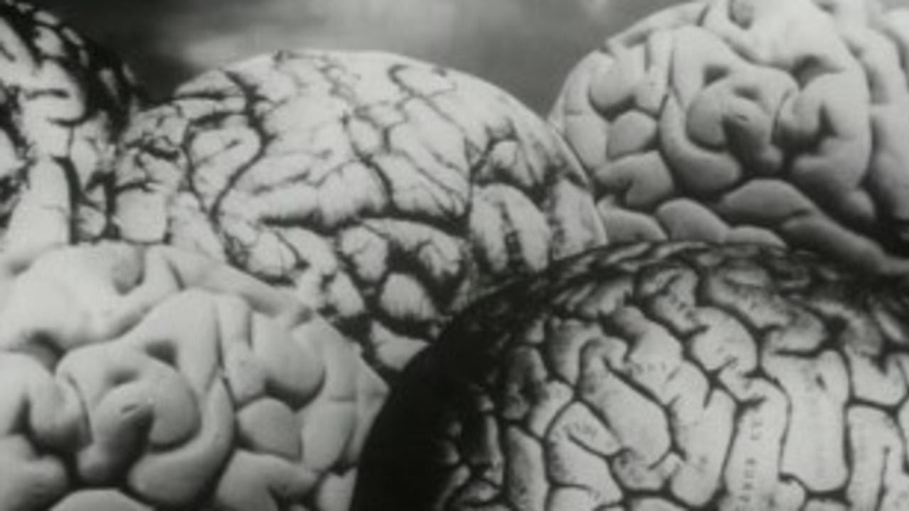 With beads of hail resembling the shape of the mold grown brains.