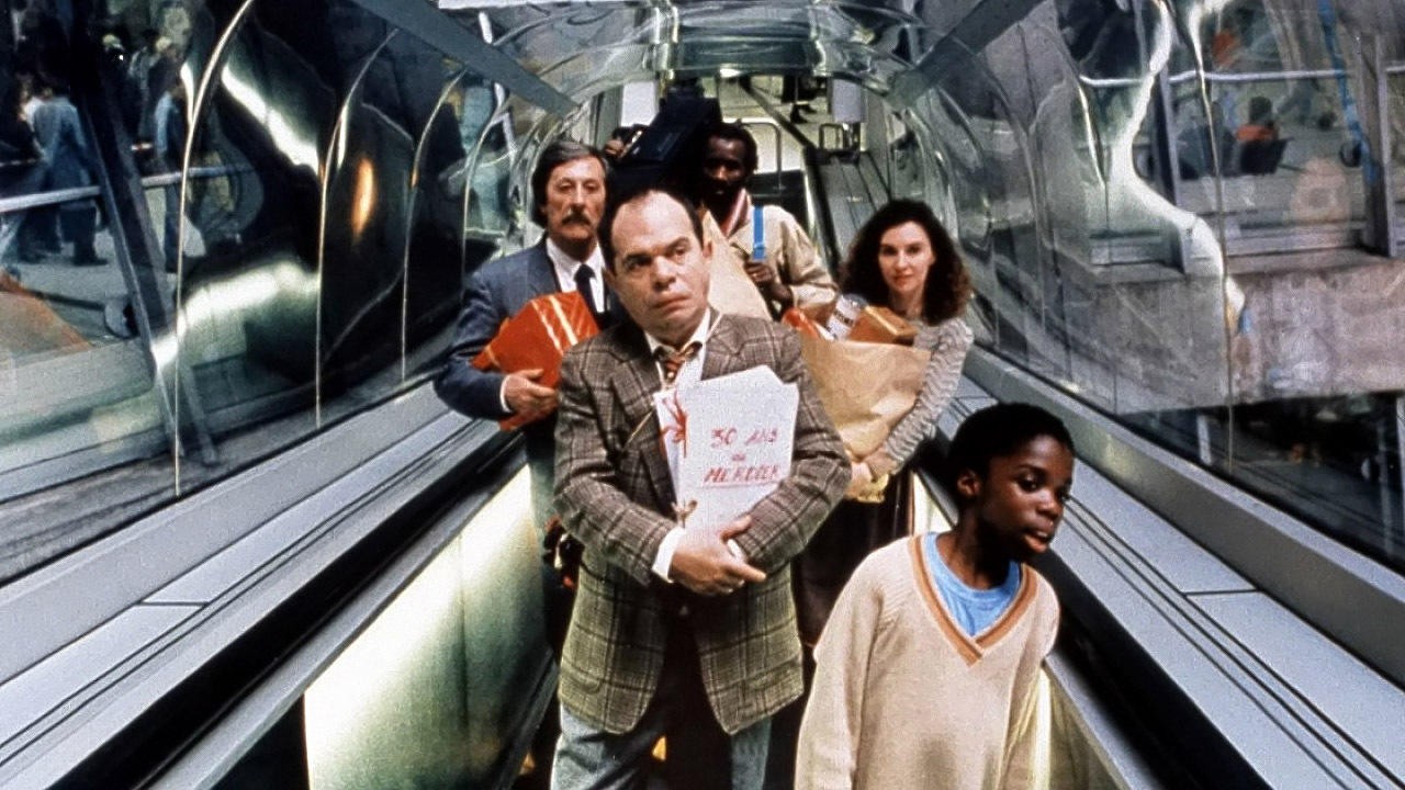 A traveller who has lost his passport in a Paris airport while between flights is restricted to a special transit zone. There he finds a group of similarly lost people hiding out and living from hand-to-mouth, reliant on their ingenuity to survive.