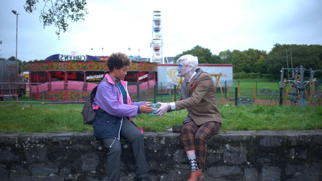 A street performer arrives in a dreary suburb and discovers an unlikely kinship with a young person.