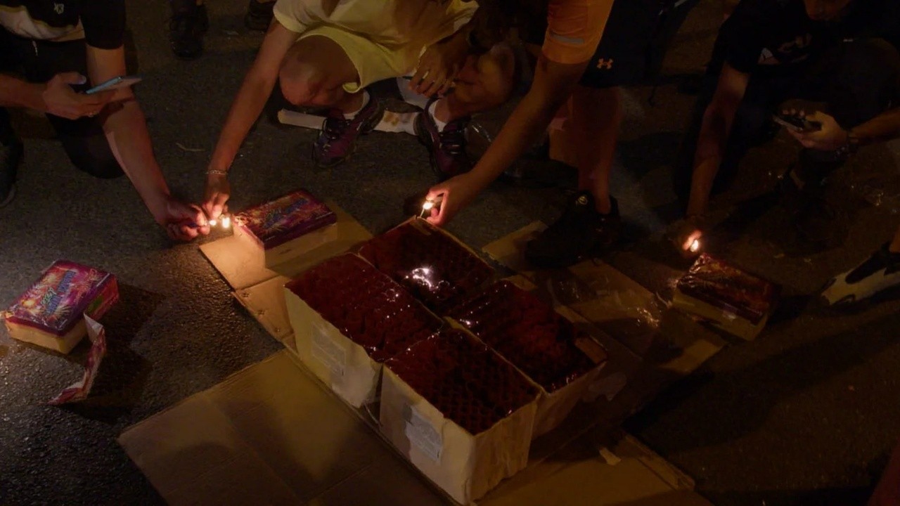 The camera moves from hand to hand to portray a street corner and the story of a collective celebration: 14 July in Massabo, Marseille. It’s time to light up the neighbourhood and the sky with fireworks.