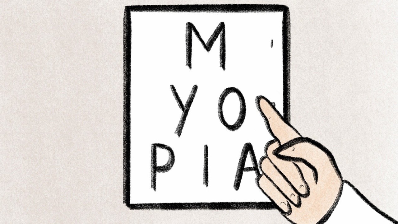 Myopia describes an unusual eye examination in which the idea of things that escape sight is brought to the extremes. Reality and its distorted and confused perception, chaos and the static monotony of perfectly visible letters – in this continual alternation, what will the hero choose?