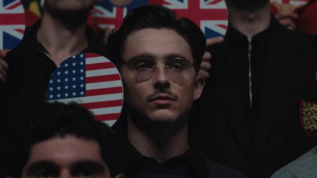 Even though he describes himself as “the ultimate product of Hitler’s defeat,” the past remains off-limits for Marty Mauser. The unwavering protagonist of Josh Safdie’s totemic Marty Supreme (2025) is played with forceful gusto and undeniable charm by a locked-in Timothée Chalamet, delivering a career-defining turn as a Jewish New Yorker who only wants to live in the future. It is a future in which he is the greatest table tennis player in the world, one in which the postwar American dream is finally fulfilled and Marty’s every desire is met. Tragically, the only thing standing in his way is the present—in which he is a nobody, wasting his potential as a clerk in the women’s shoe store of his controlling uncle.