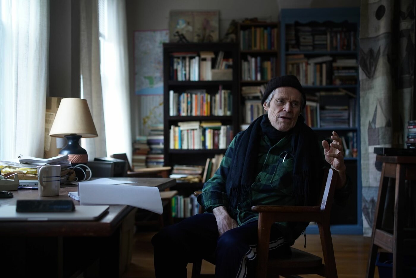 I decided early on that Pietro’s desk would be his, and I built the rest of the apartment around it. Willem Dafoe, who plays the old poet, came to set to see his apartment and walked around, touching things and giving wonderful notes. He went to the table and stood in front of it, leaned on it with all his weight, turned to look at me and nodded approvingly.