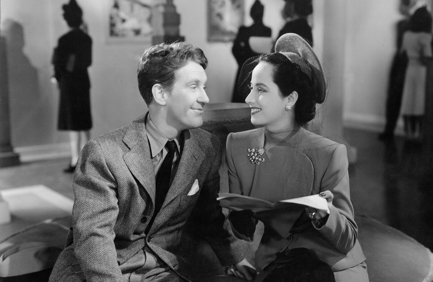 Like Catherine, Oberon’s characters—ambitious, anxious, and conflicted modern women striving to live on their own terms—uncannily mirrored what we now know of her reality. From the young Mary Smith in The Cowboy and the Lady (1938), a politician’s daughter who yearns to experience life and, with the help of her maids, enters into society and falls in love with a cowboy while obscuring her class roots, to the title character in Lydia (1941), a charitable spinster whose past lovers visit her and collectively wonder why she never married, prompting a series of flashbacks that, as the theorist and historian David Bordwell notes, point toward the fallibility of memory and multifaceted nature of identity. “What was the real Lydia?” asks Micheal Fitzpatrick (Joseph Cotton), a doctor and her most devoted lover. “There was no real Lydia,” she responds. “There were dozens of them. Ask every woman, they know. Every woman is wise and foolish, clever and absurd, good and bad. Just as Lydia was.”