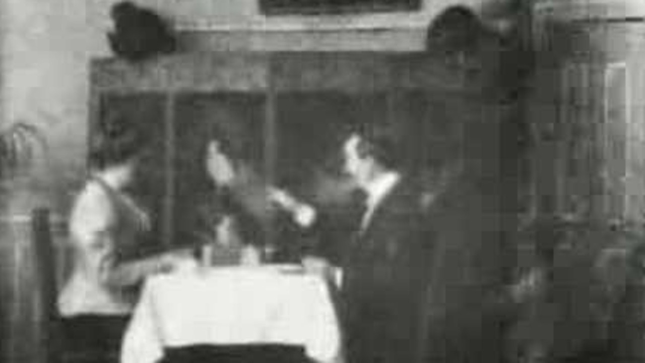 The scene takes place in a fashionable cafe.