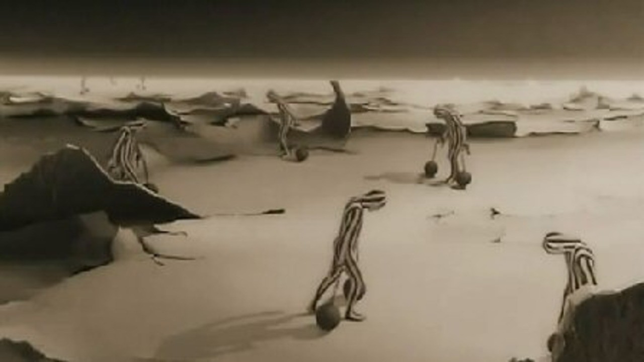 A couple of downcast prison inmates work their way through the most desperate of landscapes. One of them ventures to look up towards a shining light. Is that their deliverance? He decides to go for it.