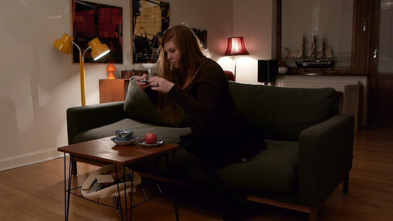 A woman alone in her apartment discovers she can peep an alternative reality through the screen of her mobile phone camera and soon sees herself unconscious on the floor.