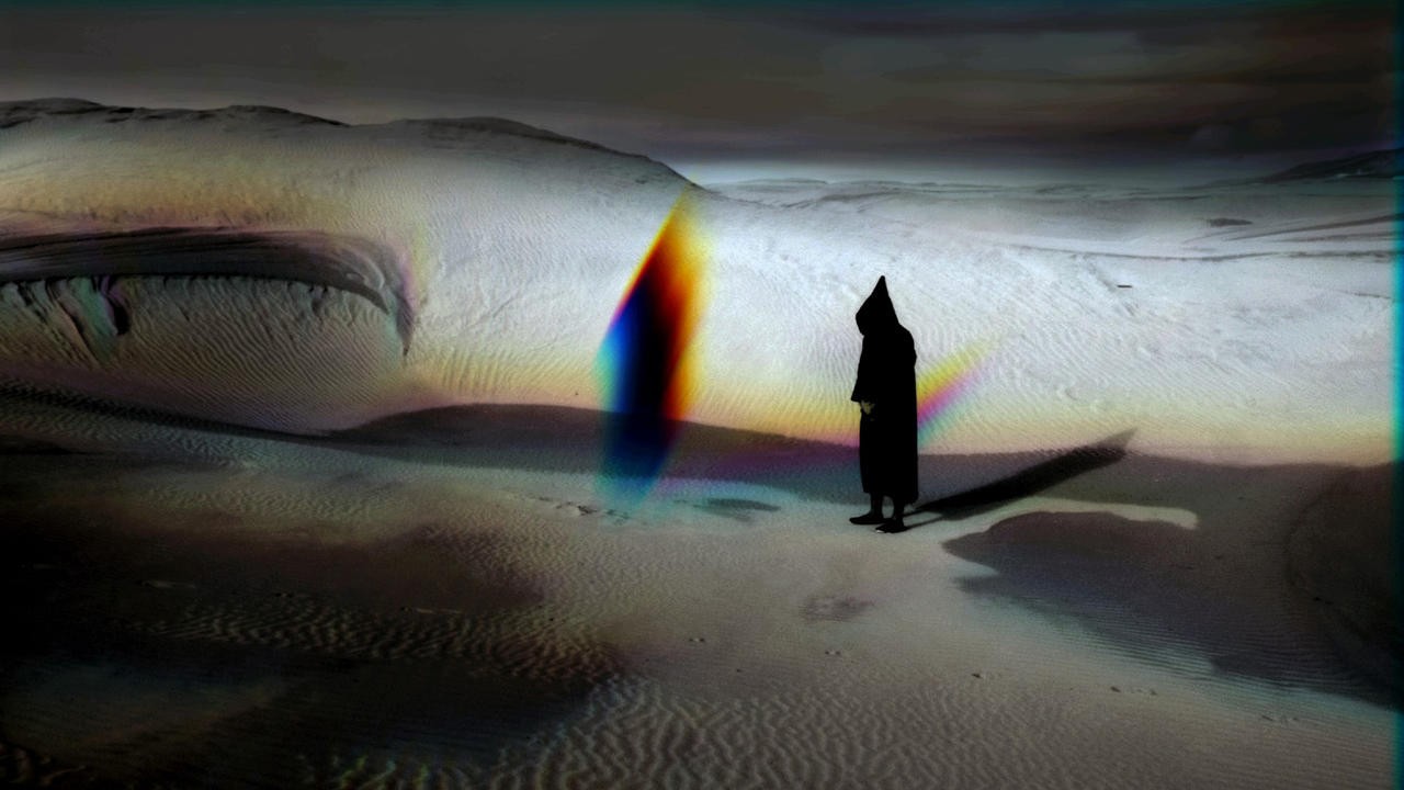 In the Moroccan desert night dilutes forms and silence moves through sand. Then dawn starts drawing silhouettes of dunes while motionless figures punctuate landscape. From night’s abstraction, light returns its dimension to space and their volume to bodies.