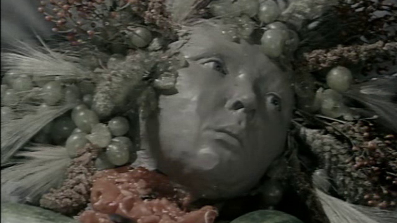 The final moments of a creature made out of fruits and vegetables.