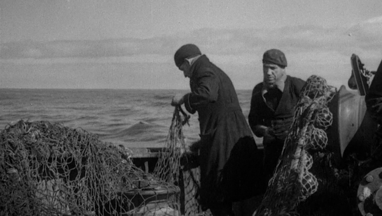 The work of a trawler on the Viking Bank in the North Sea. The soundtrack consists of the noise of a ship’s engine, fishermen’s dialogue, gull cries and music.