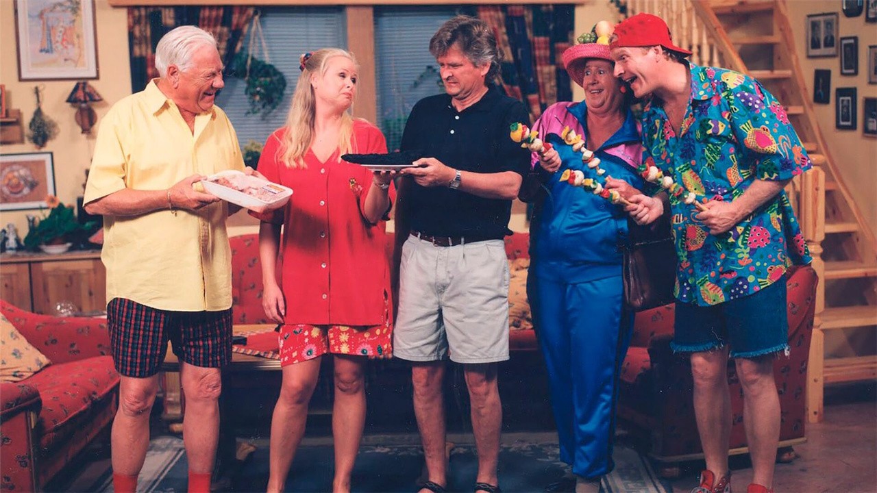A business man gets a new “family” in his house. Norway’s first long-running sitcom. Lasted for 141 episodes and 8 years. It starred beloved Norwegian actors and a “find / remember that Norwegian celebrity?” in the guest list.