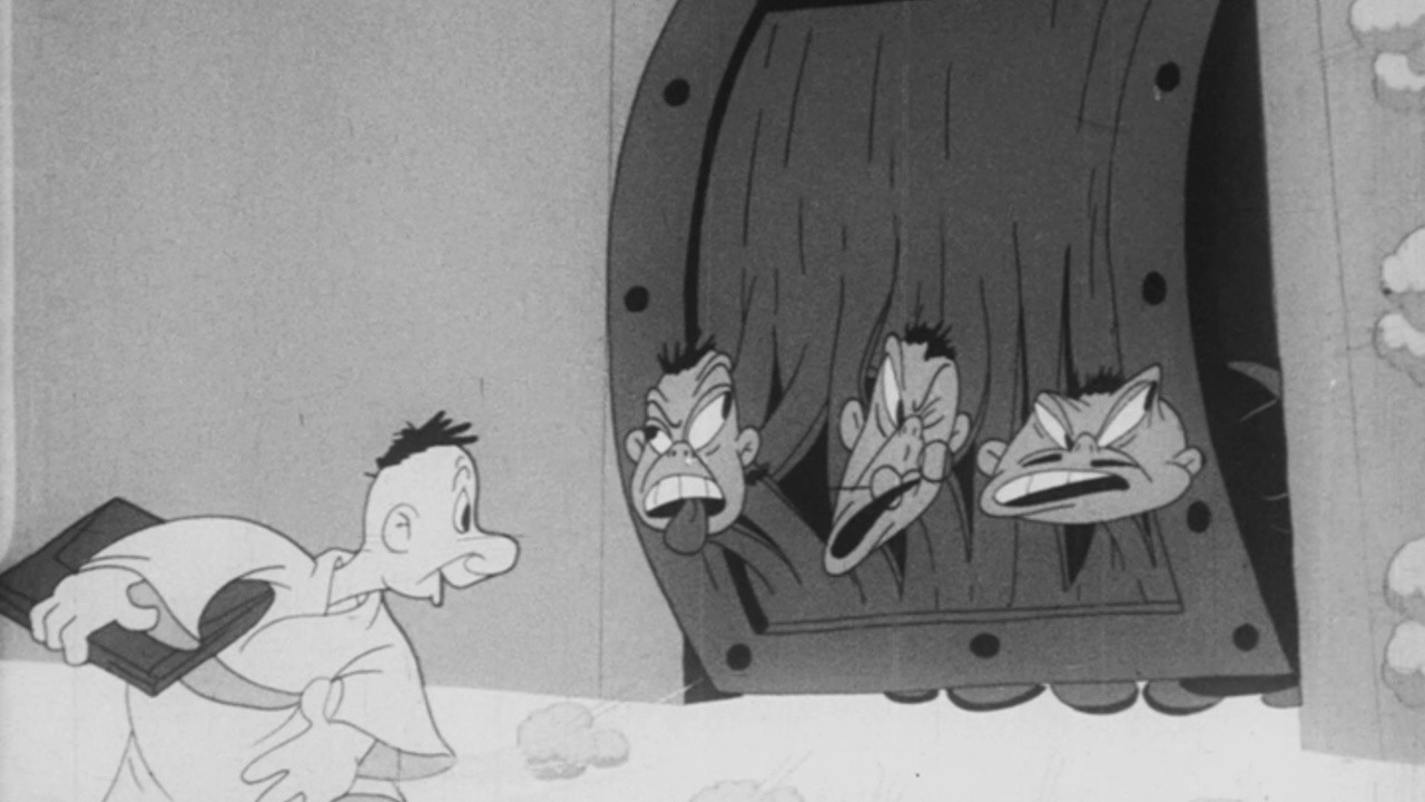 Snafu steals some top secret Japanese documents and has to disguise himself as a geisha girl to elude the General chasing him.