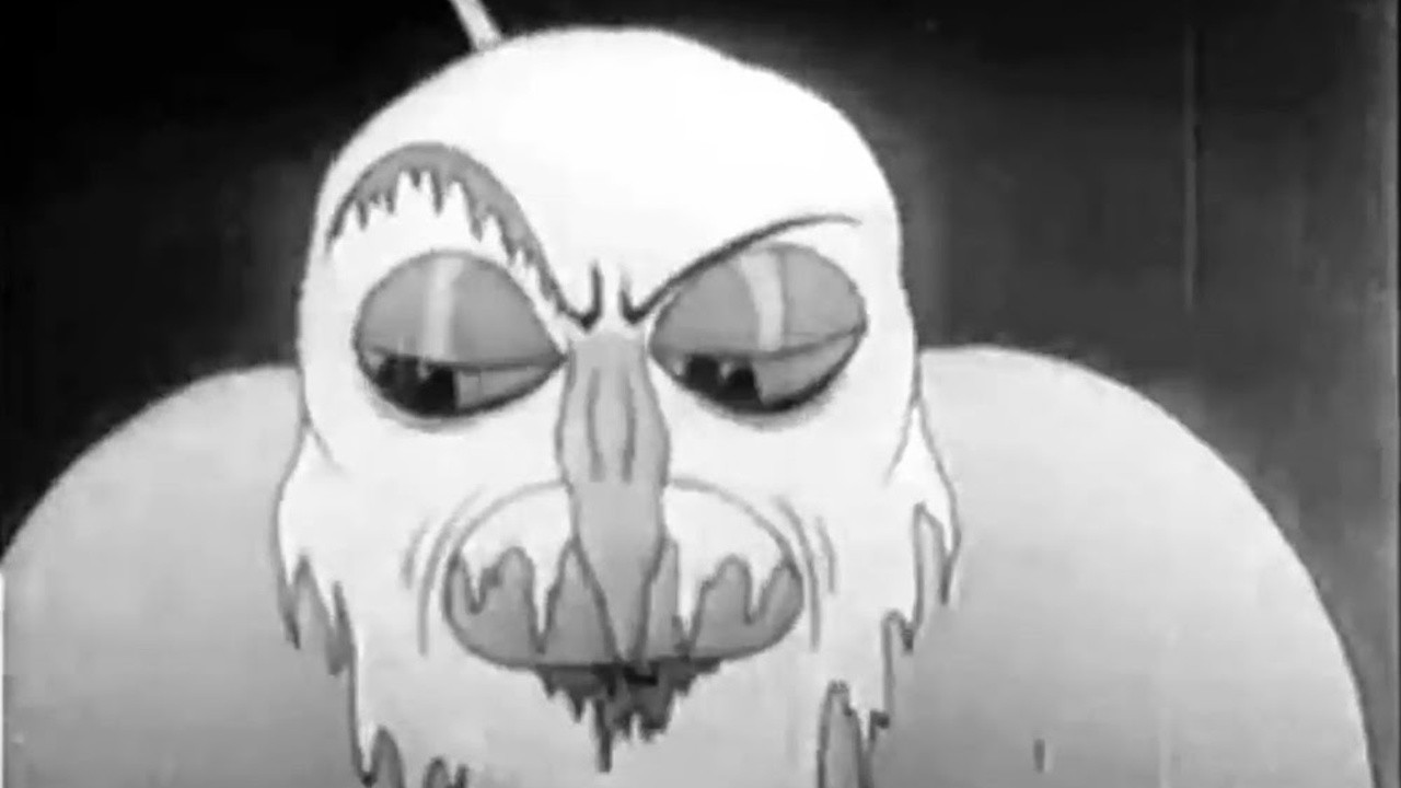 An angry snow man chases after furry little South Pole creatures.