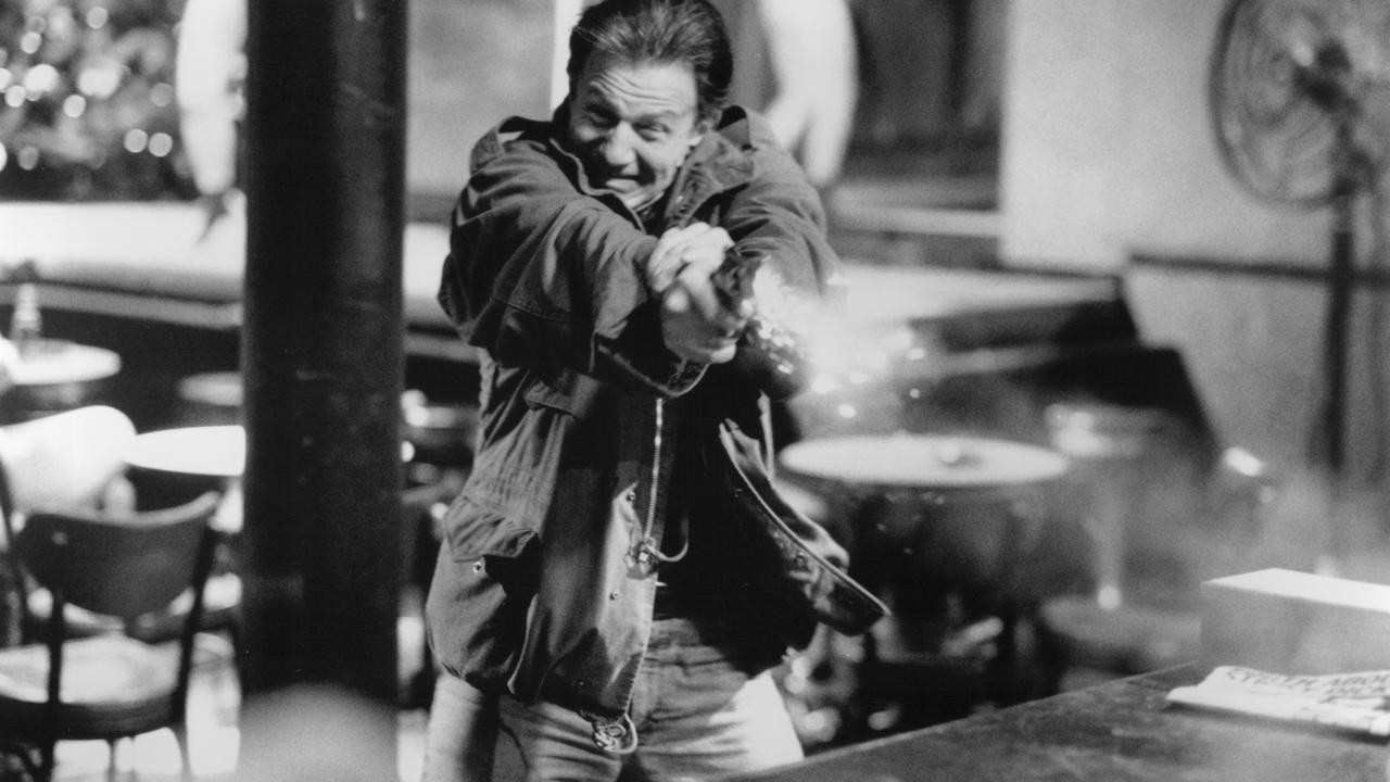The lurid title of this black comedy comes from a New York Post headline for the story on which this film is based. A gunman robs a seedy, topless bar late at night and shoots the bartender in the head.