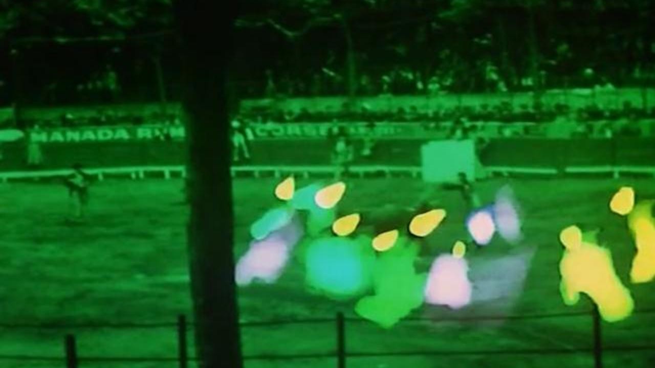 Footage of a bullfight, shot by Hill in 1934, hand-painted by the artist three decades later.