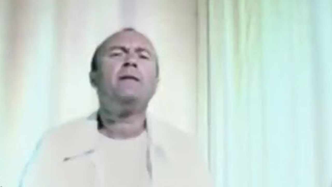 The music video opens with a spinning camera. Phil Collins dances and sings on a set with white walls that is bathed in a red light.