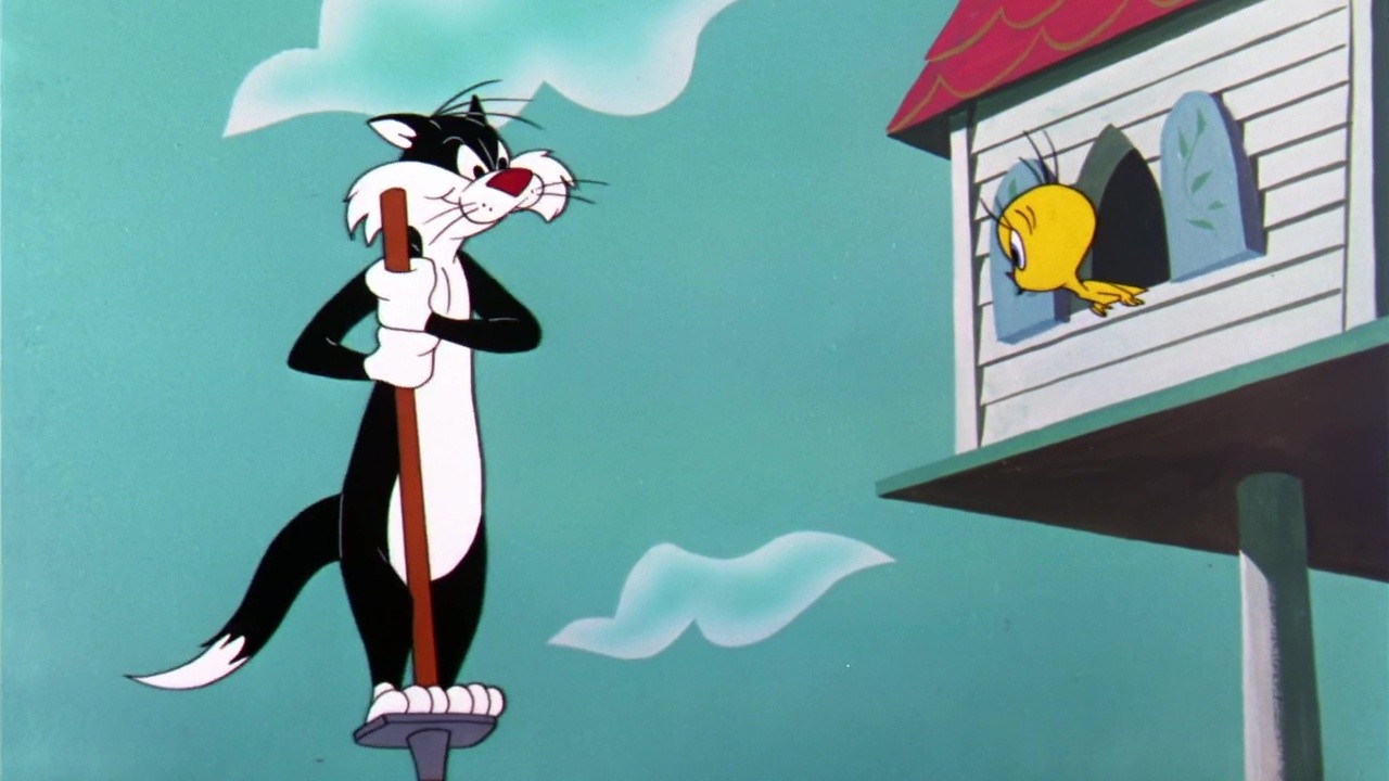 Sylvester Cat’s new hang-out is an inventor’s lab, which is near Tweety Bird’s house atop a pole.