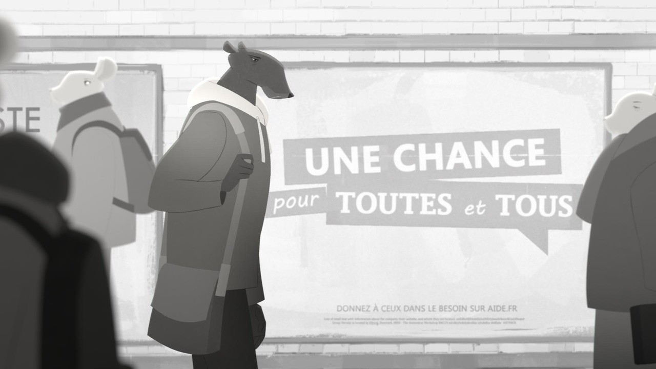An incident in the metro: a young poet is attacked by the police, seemingly unprovoked. Yet the motive has been wafting through this animated short: racism. In a world dominated by white mice, rats have been dealt a bad hand.