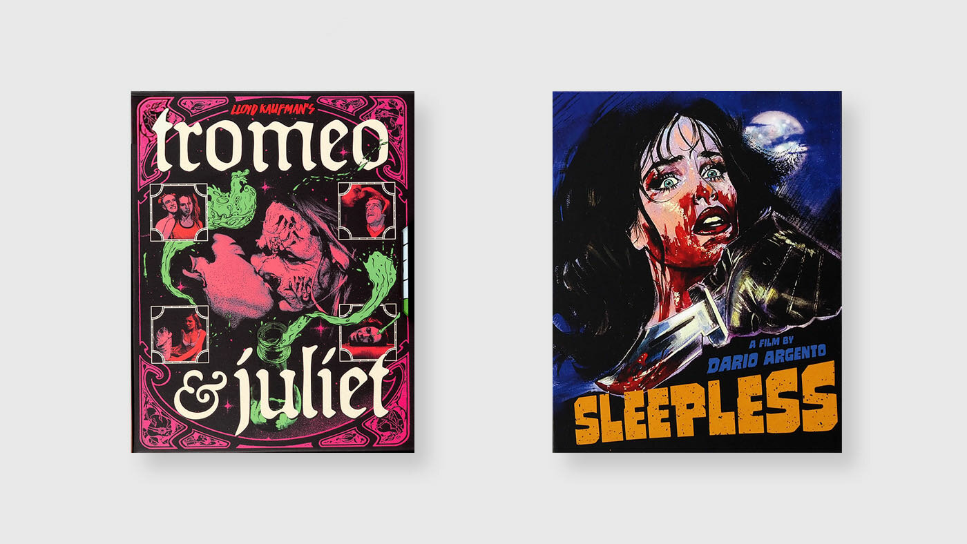 We recently learned from Alex Ross Perry that a sliver of the poster for Tromeo & Juliet can be seen hanging in David Cross’s video store in Men in Black II (2002). Vinegar Syndrome have released the first of Lloyd Kaufman’s adaptations of the Bard with several commentary tracks including two with cowriter James Gunn, who would go on to fame for superhero films outside the Troma Cinematic Universe. Their release of Dario Argento’s Sleepless (2001), meanwhile, is replete with video interviews, both new and archival.