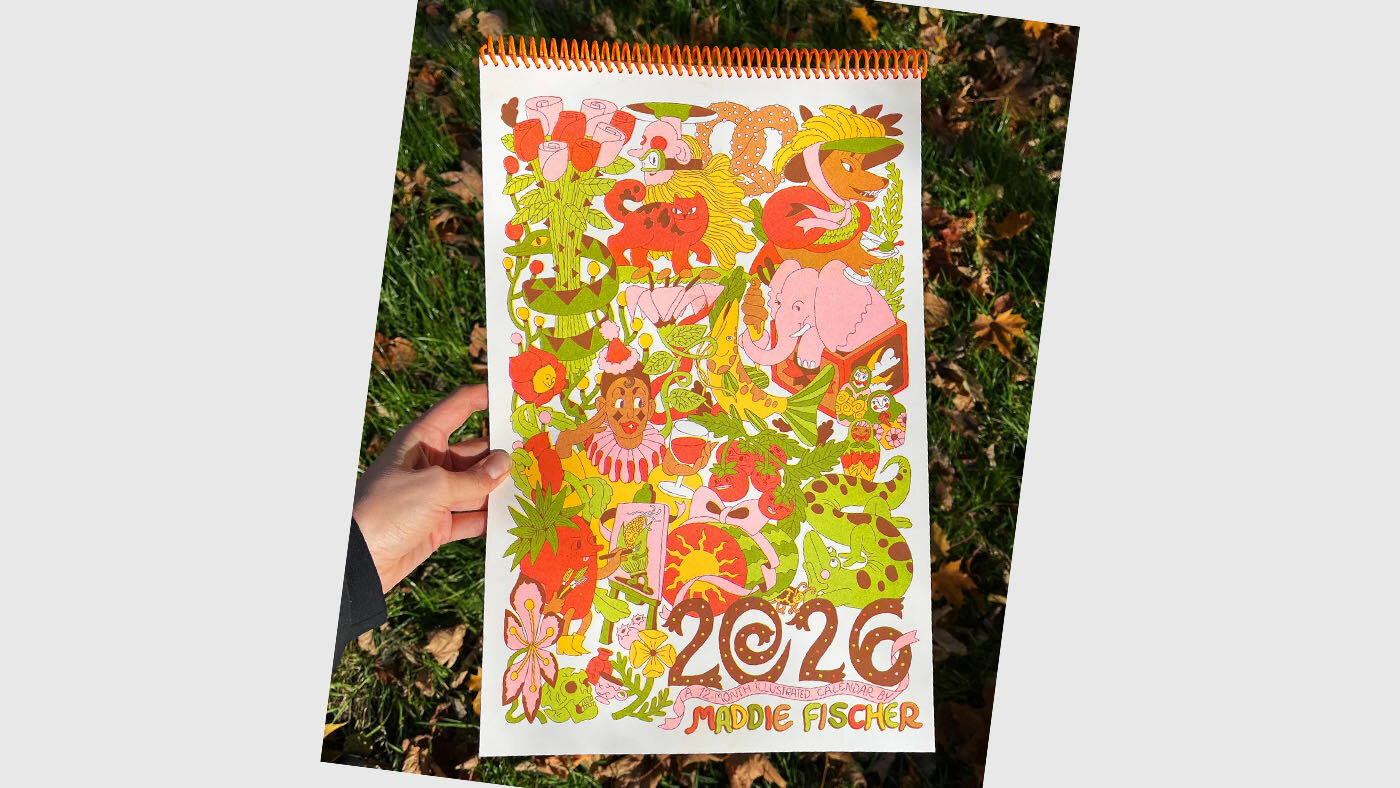 Fans of last year’s festival illustrations by our dear friend Maddie Fischer should treat themselves and others to her fabulous wall calendar, each month hand-drawn and Risograph-printed—the perfect score to our endless procession of days.