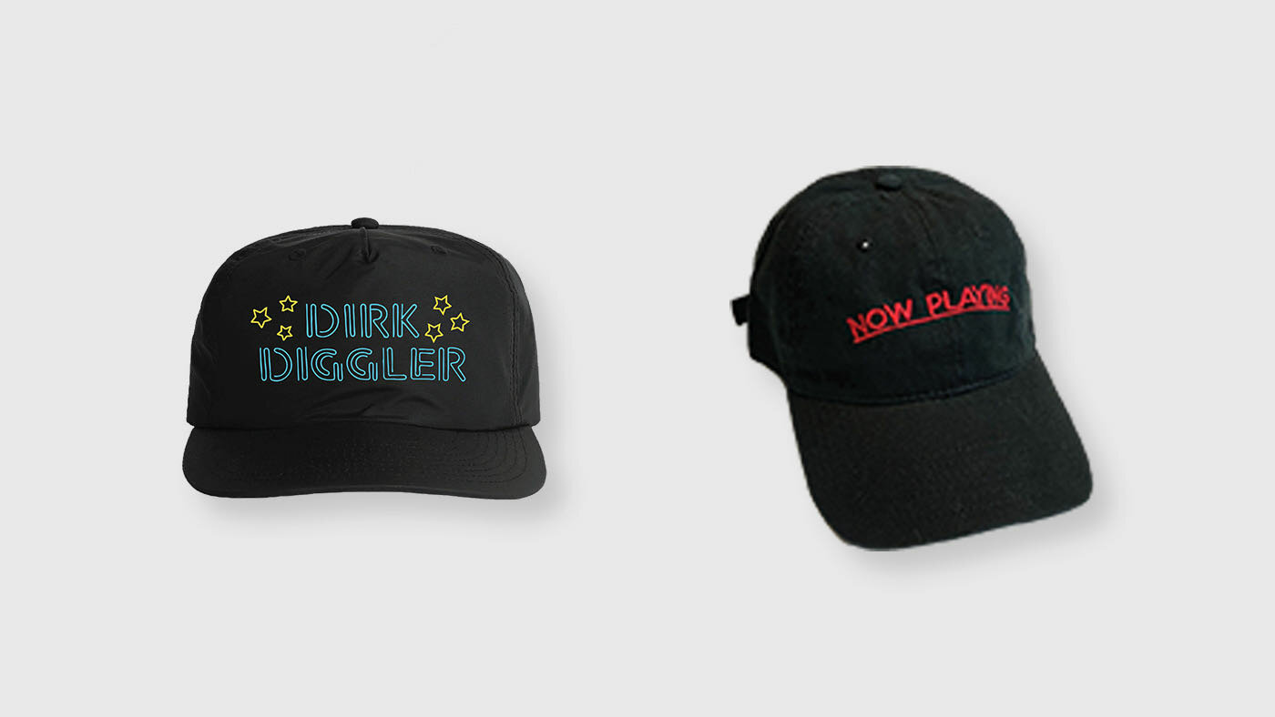 Director Fits recently released a line of Paul Thomas Anderson merchandise to celebrate the release of One Battle After Another. Of those offerings still in stock, we’re particularly fond of this Dirk Diggler hat, which one might imagine pairing with a certain prosthetic, apparently locked away in Mark Wahlberg’s safe. Also for your head: New York’s Film Forum has revived their classic 1991 cap, once modeled by David Byrne.