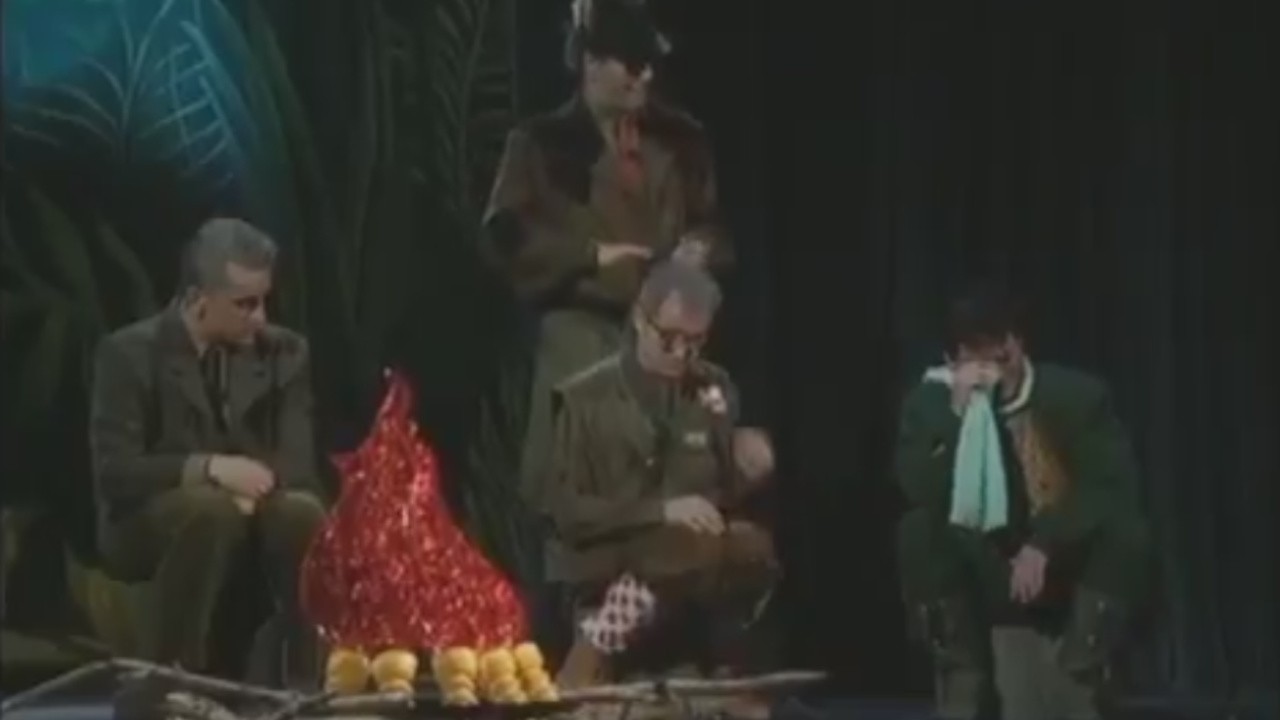 Several ultra-nationalist villains meet in the middle of the woods around the extinguished flame made from the torches that represent former Yugoslavian republics. Unable to make a single agreement about anything, they call the spirit of Tito which finds its embodiment in Slobodan Milosevic.