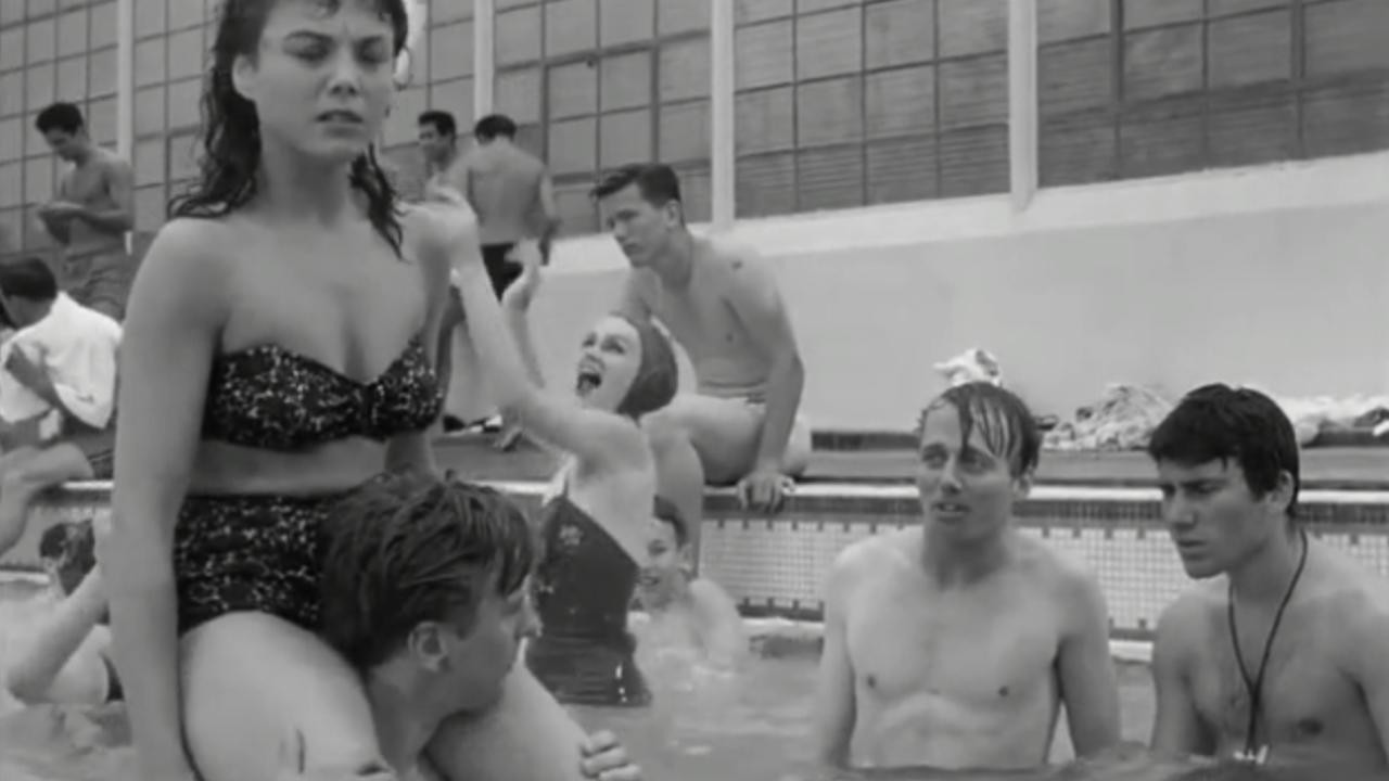 In Suburbia Confidential psychiatrist Dr. Henri Legrand reviews the files of several sexually frustrated suburban housewives who are shown having sex with salesmen, bellboys and repairmen.